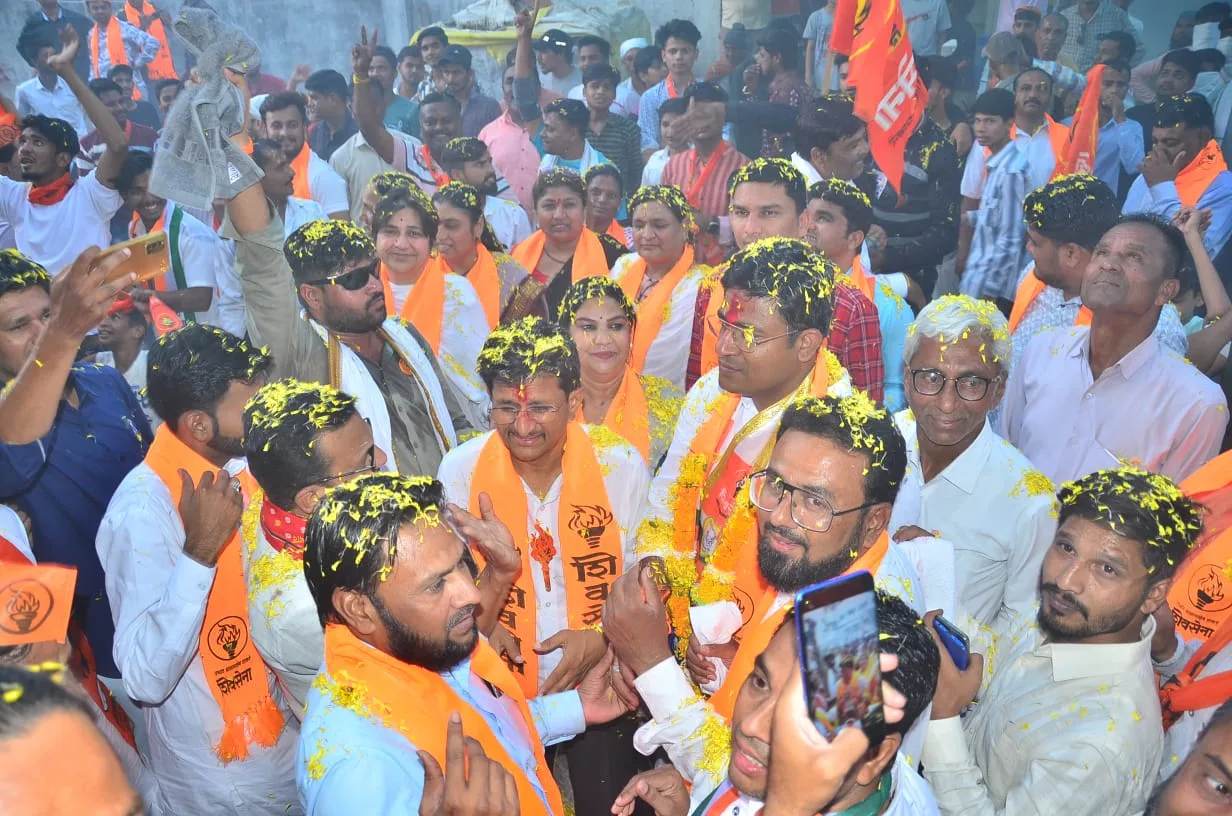 ठिकठिकाणी औक्षण आणि फुलांचा वर्षाव