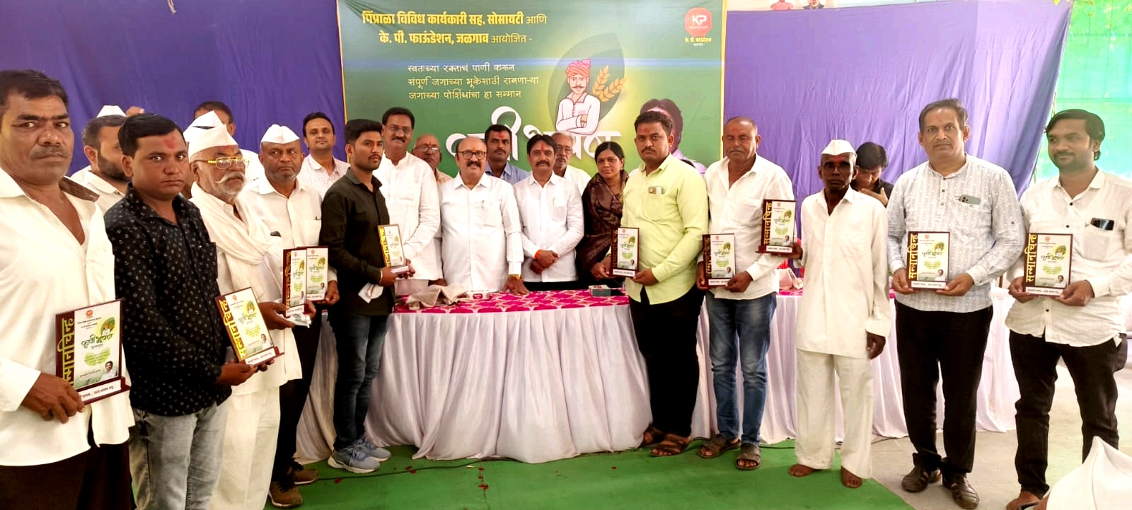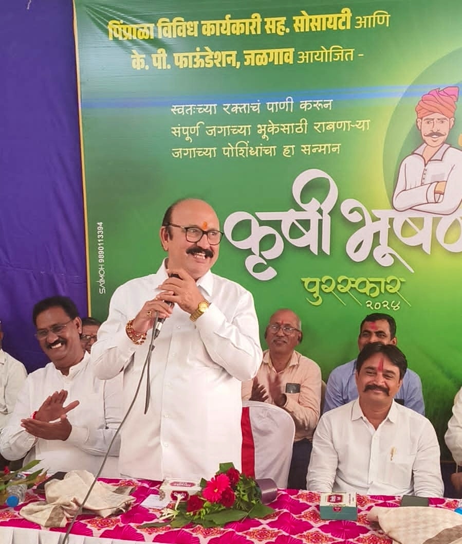 पिप्राळा विविध कार्यकारी सह.सोसायटी व के.पी.फाउंडेशन व कुलभूषण पाटील मित्र परिवार जळगांव यांच्या संयुक्त विद्यमाने आज रविवार ८ रोजी कृषी भूषण पुरस्कार २०२४ चे कार्यक्रमाचेआयोजन करण्यात आले होते. या मध्ये पिप्राळा व सावखेडा परिसरातील शेतकऱ्यांचा सन्मान चिन्ह देऊन गौरव करण्यात आला. या मध्ये केळी, तूर,ज्वारी,दूध,फुल,फळ इ विविध शेती पीक घेणाऱ्या शेतकऱ्यांचा समावेश होता.