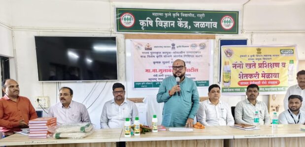 कृषी विभाग, आत्मा जळगाव व कृषी विज्ञान केंद्र ममुराबाद यांचे संयुक्त विद्यमाने राज्य पुरस्कृत कापूस – सोयाबीन उत्पादकता वाढ विशेष कृती योजने अंतर्गत १०० टक्के अनुदानावर नॅनो युरिया, नॅनो डी.ए.पी., कापूस साठवणूक बॅग व बॅटरी चालित फवारणी पंपाचे प्रतिनिधिक स्वरूपात वितरण पाणीपुरवठा व स्वच्छता मंत्री तथा पालकमंत्री जळगाव गुलाबरावजी पाटील यांच्या शुभहस्ते करण्यात आले.