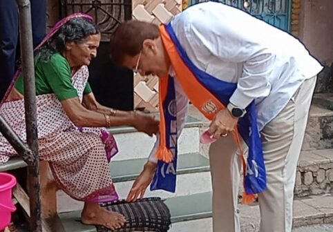 जुन्या जळगावात नागरिकांकडून पुष्पवृष्टी, महिला भगिनींकडून औक्षण : जेष्ठाकडून घेतले शुभाशिर्वाद