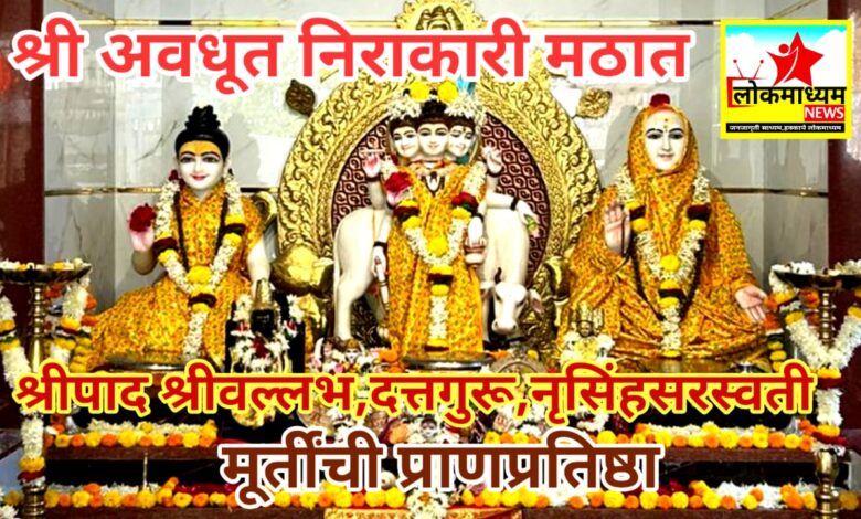 दुपारी १२ वाजता १० महाराजांच्या उपस्थितीत मंत्रोचाराने श्री अवधूत निराकारी मठात श्रीपाद वल्लभ दत्तगुरू,नृसिह मूर्तीची प्राणप्रतिष्ठा करण्यात आली.