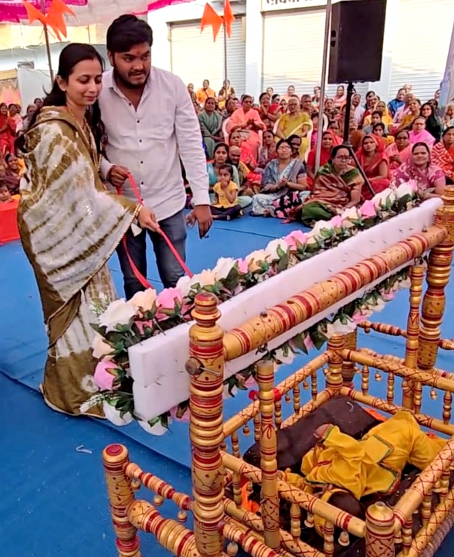 कथेच्या पाचव्या दिवशी हभप देवदत्त मोरदे महाराज यांनी कृष्णजन्माची कथा आणि कृष्णचरित्र कथा सुश्राव्य केली. प्रसंगी भाविकांनी श्रीकृष्ण जन्माचा सोहळा उत्साहात साजरा केला. ‘किती सांगू मी, सांगू कोणाला ? आज आनंदीआनंद झाला…’ मथुरेत खेळतोय हरी…’ अशी विविध भजन सादर करून महिला भाविकांनी कृष्ण जन्म उत्सव साजरा केला.