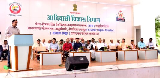 जैन हिल्स येथे आदिवासी विकास विभागाच्या वतीने जैन इरिगेशनच्या सहकार्यातून आयोजीत पेसा क्षेत्रातील वैयक्तिक वनहक्क धारकांना (IFR) सामुहिकरित्या द्यावयाच्या योजनांच्या अनुषंगाने, क्षेत्रनिहाय समूह (Cluster/spice Cluster) ‘मसाला समूह’ तयार करणेबाबत आयोजीत कार्यशाळेत अध्यक्षीय भाषणात ते बोलत होते.