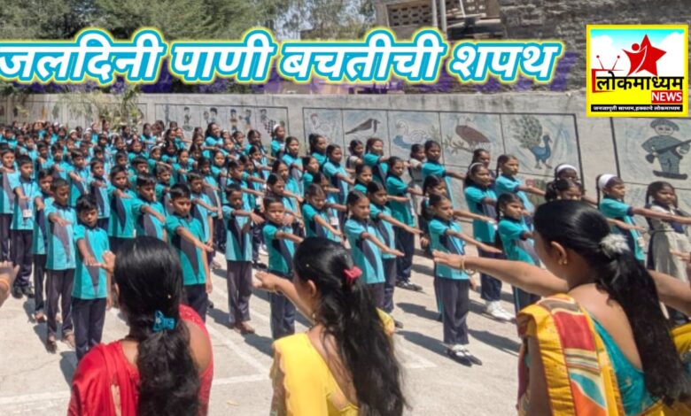 जागतिक जल दिनाचे औचित्य साधून मेहरुण येथील श्री संत ज्ञानेश्वर प्राथमिक व माध्यमिक विद्यालयातील विद्यार्थ्यांनी शनिवारी पाणी बचतीची शपथ घेतली. शाळेच्या आवारात पाणी बचतीचा संदेश देणारे घोषवाक्य हातात घेऊन ‘पाणी हेच जीवन’, ‘पाण्याची बचत म्हणजेच पाण्याची निर्मिती’, ‘जल है तो जीवन है’ अशा घोषणा विद्यार्थ्यांनी दिल्या.