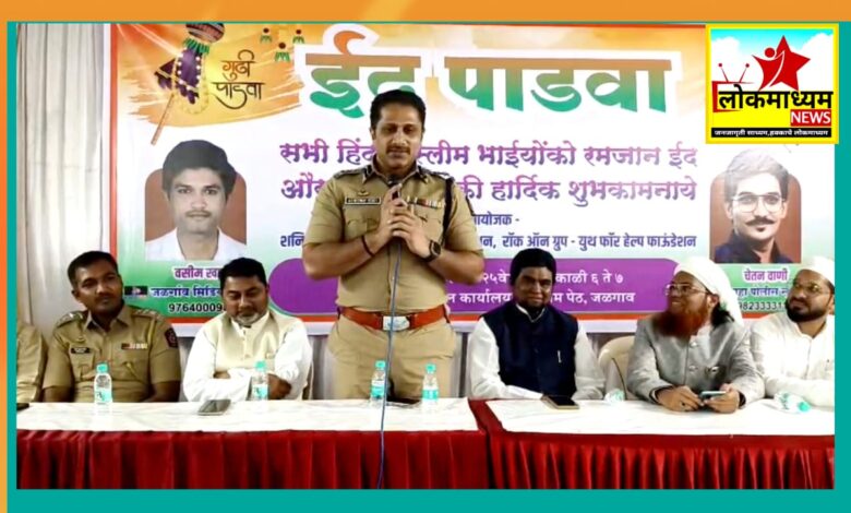 | लोकमाध्यम न्यूज | जळगांव दि.२ : गुढी पाडवा आणि ईद या दोन पवित्र सणांच्या निमित्ताने जळगाव शहरात सामाजिक एकोप्याचा संदेश देणारा ‘ईद पाडवा’ हा अनोखा सोहळा उत्साहात साजरा झाला. हिंदू आणि मुस्लिम बांधवांनी एकत्र येऊन सणांचा आनंद साजरा करत परस्पर सौहार्द आणि शांततेचा संदेश दिला. कट्टर हिंदूत्व, कट्टर इस्लाम मनात बाळगताना कट्टर देशभक्ती देखील असावी, असे प्रतिपादन पोलीस अधीक्षक डॉ.महेश्वर रेड्डी यांनी केले.