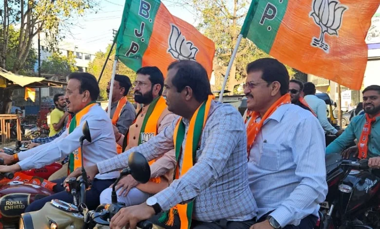 जळगांव दि.४ : देशाचे गृह मंत्री ना.अमित शाह यांच्या जळगांव येथील युवा संवाद दौऱ्या निमित्त ना.गिरीश महाजन यांच्या नेतृत्वात भाजपा महानगर तर्फे वसंत स्मृती भाजपा कार्यालय ते सागर पार्क बॅरिस्टर निकम चौक येथे बाइक रॅली आयोजित करण्यात आली होती