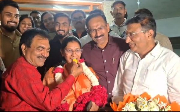 तसेच, भाजपने त्यांना ‘एबी’ फॉर्म देखील दिलेला नव्हता. त्यामुळे या जागेवर उज्वला बेंडाळे या एकमेव उमेदवार राहील्याने निवडणूक निर्णय अधिकारी यांनी बुधवारी याबाबतची अधिकृत घोषणा करून त्यांची निवड बिनविरोध झाली.या निमित्ताने फटाके फोडत एकमेकांना पेढे भरवत पदाधिकारी आणि कार्यकर्त्यांनी विजयोत्सव साजरा केला.