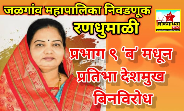 | लोकमाध्यम न्युज जळगांव | दि. २ जानेवारी २०२६ : जळगाव शहर महानगरपालिका निवडणुकीत शिवसेना (शिंदे गट) आणि महायुतीची विजयी लाट अधिकच मजबूत होताना दिसत आहे. डॉ. गौरव सोनवणे आणि मनोज चौधरी यांच्या बिनविरोध निवडीनंतर आता प्रभाग क्रमांक ९ ‘ब’ मधून शिवसेनेच्या प्रतिभा देशमुख यांचीही बिनविरोध निवड झाली आहे. यामुळे महापालिकेत महायुतीचा चौथा, तर शिवसेना शिंदे गटाचा सलग तिसरा उमेदवार निर्विरोध निवडून आल्याने राजकीय वर्तुळात महायुतीचे वर्चस्व ठळकपणे अधोरेखित झाले आहे.