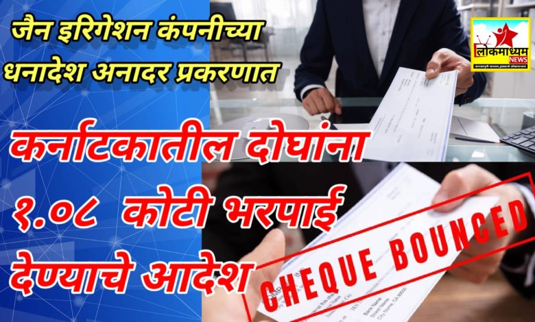 कर्नाटकातील दोघांना १.०८ कोटी भरपाई देण्याचे आदेश; जैन इरिगेशन कंपनीच्या धनादेश अनादर प्रकरणी न्यायालयाचा निकाल