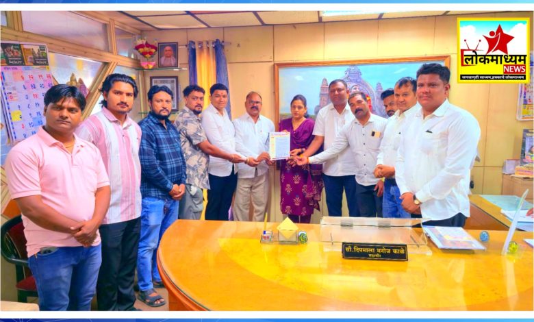 या संदर्भात योगेश बागडे, राहुल नेतलेकर, शशिकांत बागडे, मोहन गौरुगे, संदीप बागडे यांच्यासह समाजाच्या पदाधिकाऱ्यांनी प्रशासनाला निवेदन देत, या प्रश्नाकडे गांभीर्याने लक्ष देऊन तातडीने उपाययोजना कराव्यात, अशी मागणी केली आहे.निवेदन देताना अध्यक्ष योगेश बागडे, सचिव राहुल नेतलेकर,कार्याध्यक्ष शशिकांत बागडे, वीर दहिेयेकर , मोहन गारुंगे, संदीप बागडे यांच्यासह पदाधिकारी मोठ्या संख्येने उपस्थित होते.