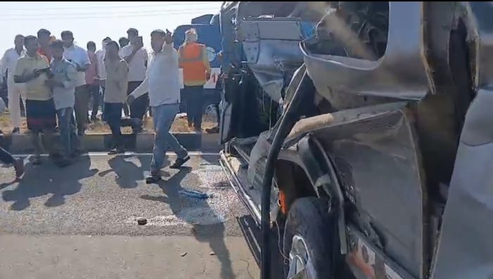 नववधूसह तिघांचा जागीच मृत्यू; चाक निखळल्याने क्रुझर ट्रकवर धडकली
