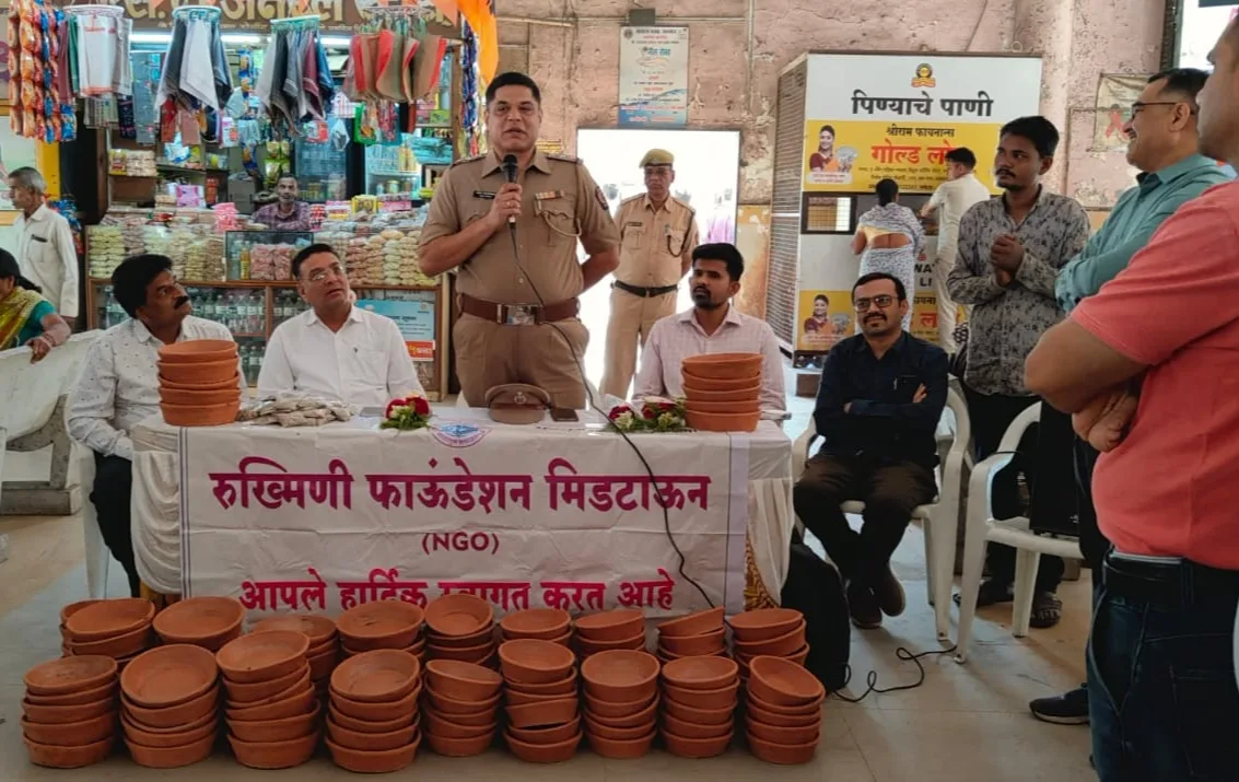 जळगाव दि.२१ : चिमणी दिवसा निमीत्ता ने उन्हाळयात पक्षांना पाणी पिण्याची सोय व्हावी हया हेतुने जळगांव येथील रुख्मिणी फांऊडेशन मिडटाऊन तर्फे एस. टी. बस स्टँड परिसरात मोफत परळाचे व धान्य पुडी चे वाटप करण्यात आले.